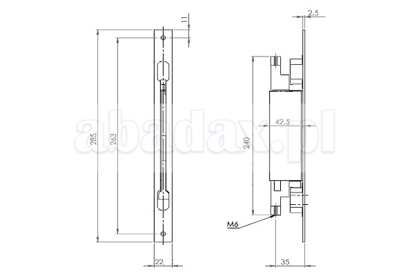 rygiel wpuszczany centralny 285x22mm/M6rygiel wpuszczany centralny 285x22mm/M6
